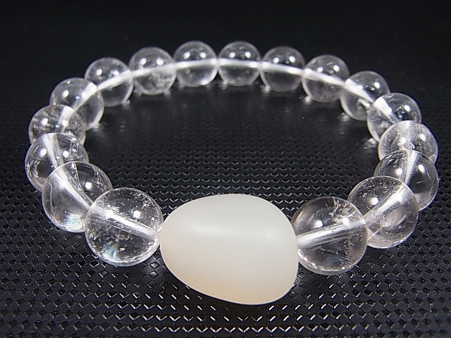 和田玉(ホータンぎょく/羊脂白玉)/K2カラコルム・クリアクオーツ/オリジナルブレスレット 内寸:約15cm [戻る]