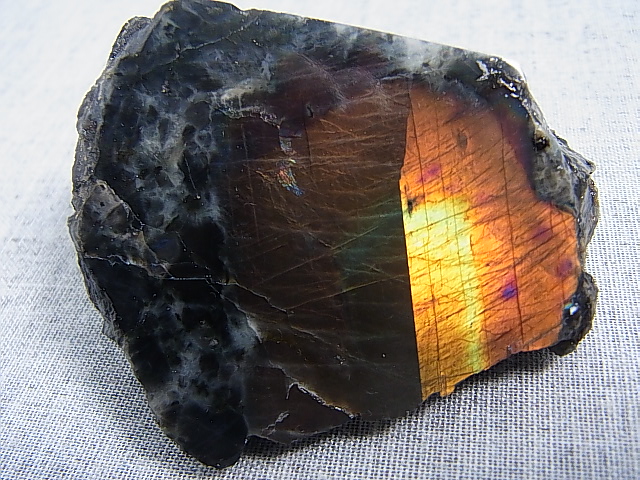 フィンランド・ユレマー産スペクトロライト(パープルヴィオラミックス)原石ブロック(1面研磨/セパレート反射) 102.9g