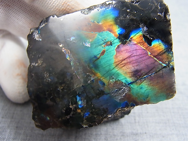 フィンランド・ユレマー産スペクトロライト(パープルヴィオラ&ブルーマトリクス)原石ブロック(1面研磨) 142.8g [戻る]