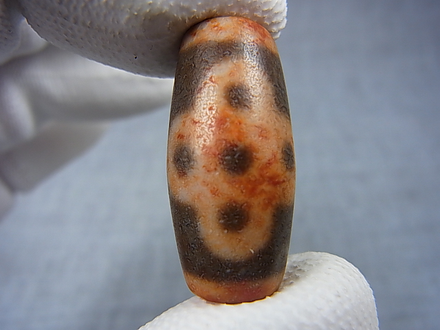 ヴィンテージ:「赤閃電五眼」西蔵(チベット)天珠 直径約13×27.5mm [戻る]