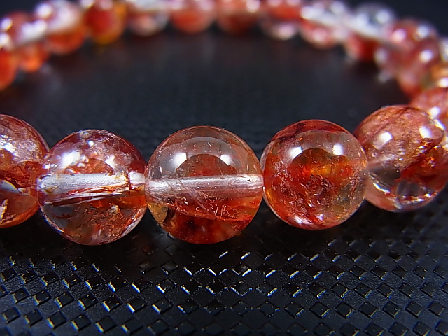 ブラジル・ミナスジェライス州産リモナイトイン「オーロラ」水晶ブレスレット 8.5mm平均 内寸:約15.5cm [戻る]