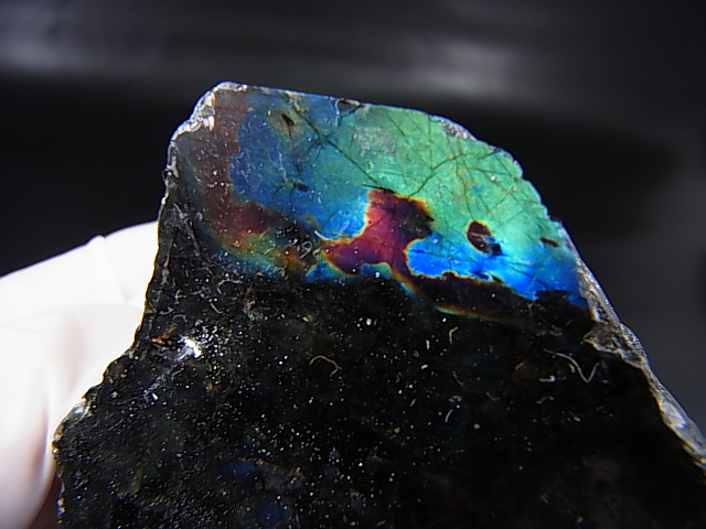 フィンランド・ユレマー産スペクトロライト(ブルーマトリクス&ヴィオラ)原石ブロック(1面研磨) 113.4g