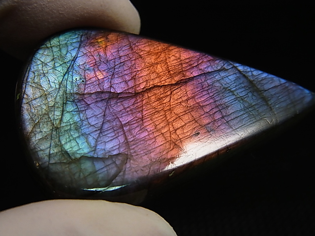 レアカラー:オレンジピンク/パープル/ブルーシラーラブラドライト研磨タンブル 12.3g [戻る]