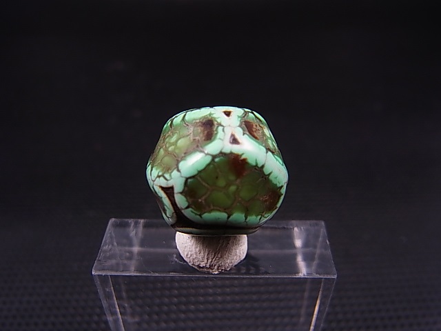 ヴィンテージ:「雪域天珠:老緑色亀甲」西蔵(チベット)天珠 直径約15×13mm [戻る]