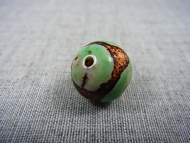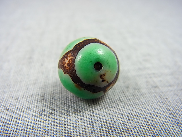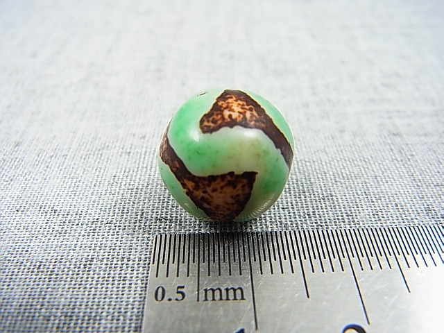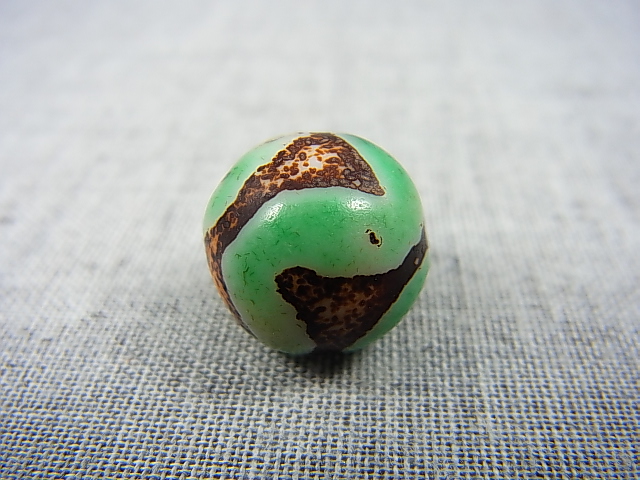 ホーム | ■超特価!各種ビーズ1粒売り■ > 天珠ヴィンテージ:「雪域天珠:老緑色虎牙」西蔵(チベット)天珠 直径約14×14.5mm