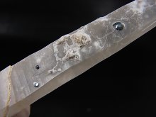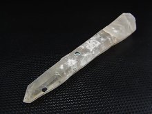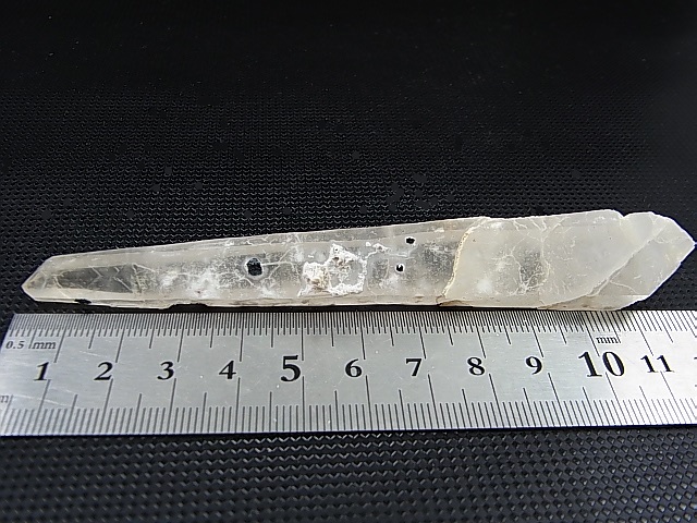本品はレーザー型の水晶で内モンゴル産によく見られるヘマタイト(アイアンローズ)が付着しています。