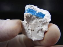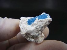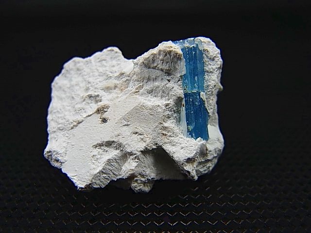本品は産状が粘土鉱物のカオリナイトに埋まったアクアマリン柱状結晶です。