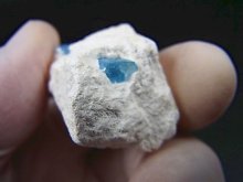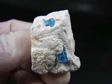 本品は産状が粘土鉱物のカオリナイトに埋まったアクアマリン柱状結晶です。