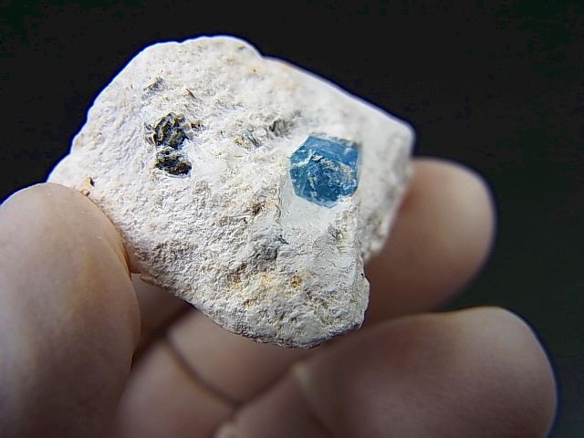 付着しているアクアマリンの柱状結晶は透明で非常に美しい宝石品質です。