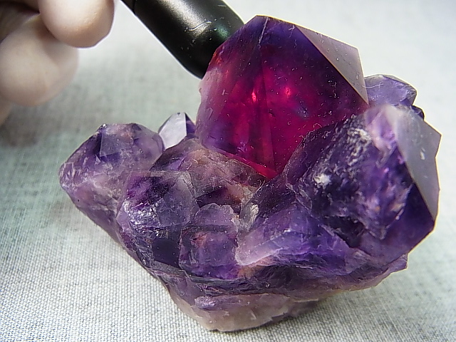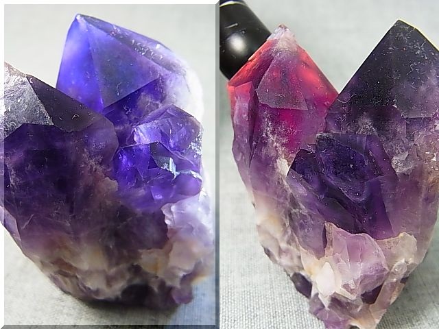 濃い紫色と白熱灯によるカラーシフト(紫→赤)が特徴的なサンプルです。