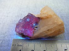 長波紫外線で鮮やかな赤色に蛍光する、コレクターに人気のオハエラ鉱山産フローライトです。