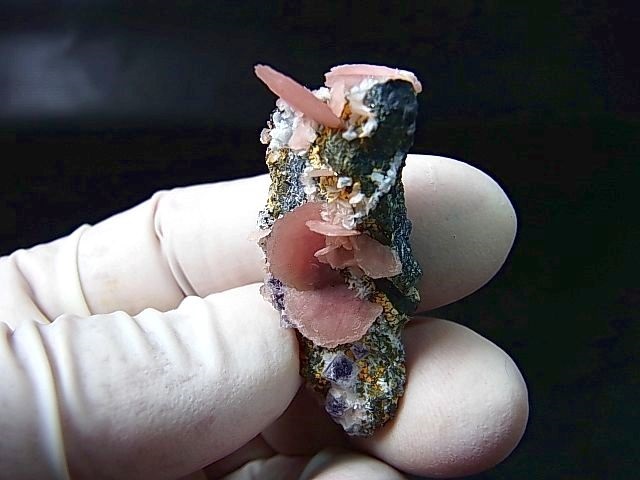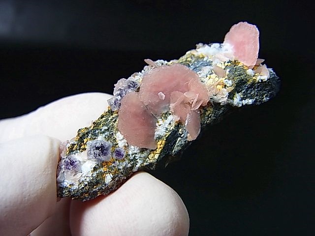この産地のロードクロサイトは世界でも珍しくフローライトと共生しています。