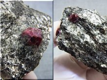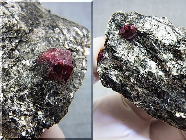 母岩は鉄分を含んだグラファイト(石墨)とキラキラした雲母です。
