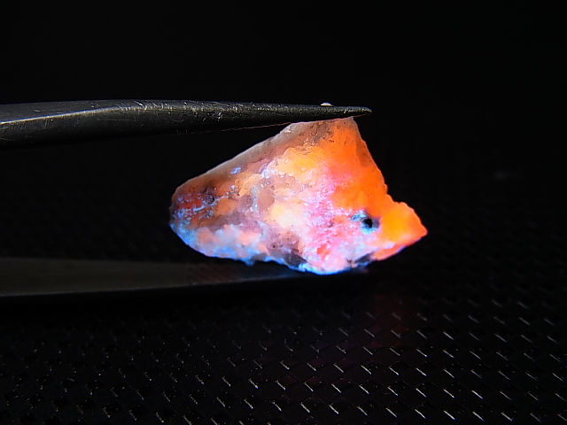 日光や紫外線ライトでハックマナイトのようにオレンジの美しい蛍光をする石です。