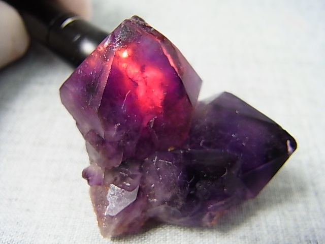 濃い紫色と白熱灯によるカラーシフト(紫→赤)が特徴的なサンプルです。