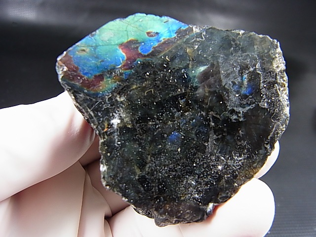 ホーム | ■スペクトロライト■ > 原石スライスとブロックフィンランド・ユレマー産スペクトロライト(ブルーマトリクス&ヴィオラ)原石ブロック(1面研磨) 113.4g