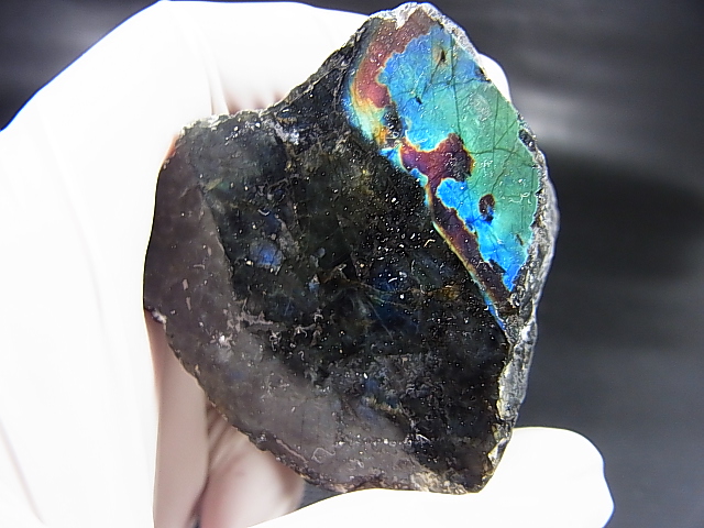光の干渉効果によって見える様々な色模様(スペクトル=虹色)はフィンランドだけで産出される種類です。