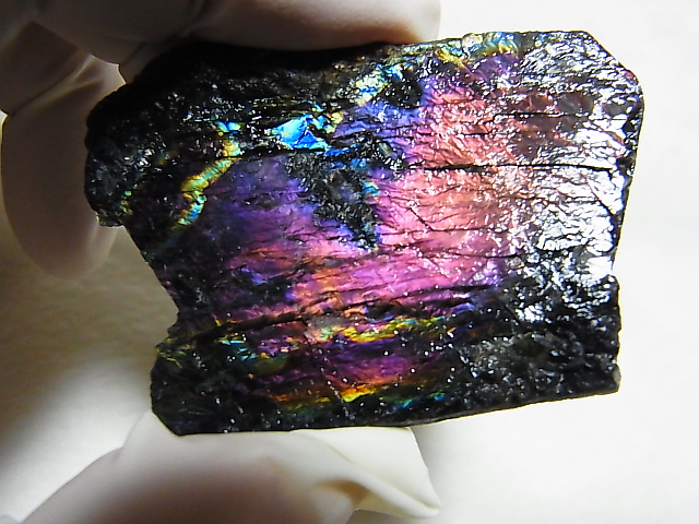 光の干渉効果によって見える様々な色模様(スペクトル=虹色)はフィンランドだけで産出される種類です。