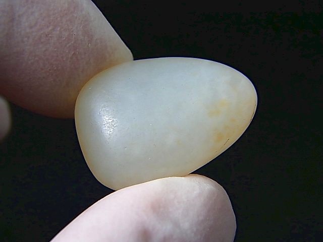 本品は羊脂白玉などと呼ばれ、角閃石のトレモライトを含みホータン玉の中でも特に稀少とされます。