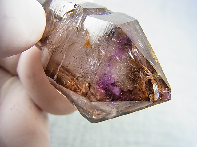 内部にゲーサイト(針鉄鉱)などが見えるエレスチャルです。