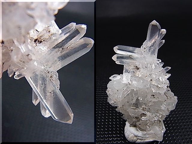 本品は水晶が格子(ラティス)のように重なって成長した形状(ギッター水晶)も見えます。