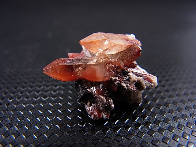 母岩から成長した、このメキシコ産のトパーズ結晶は赤い色をしています。