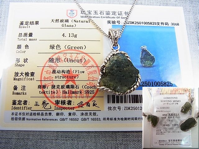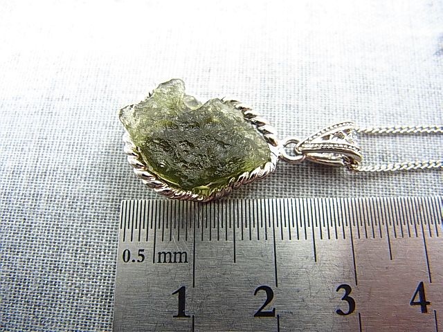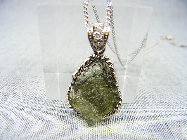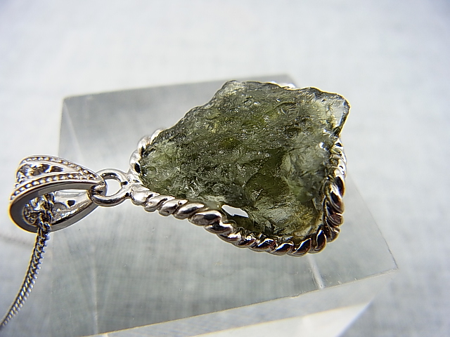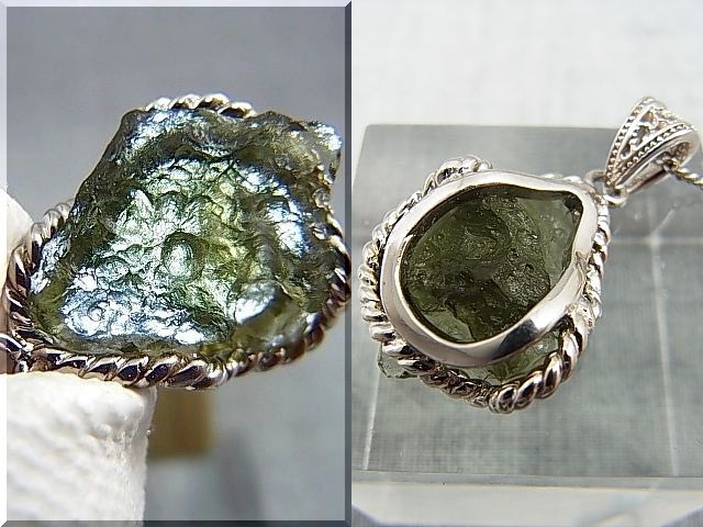 モルダバイトの原石をシルバー枠の手造りで作ったペンダントです。