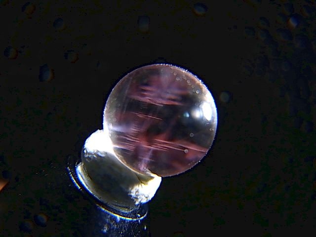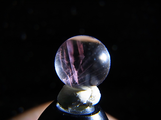 水晶(丸玉加工)の内部に非常に希なティンダルエフェクト(チンダル効果)現象の