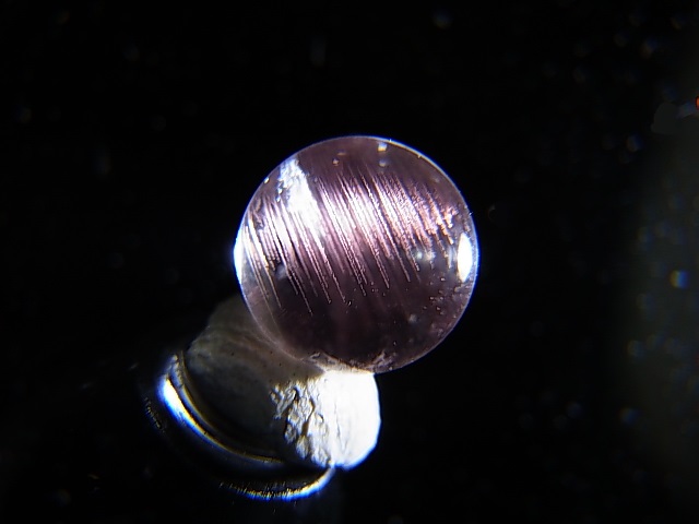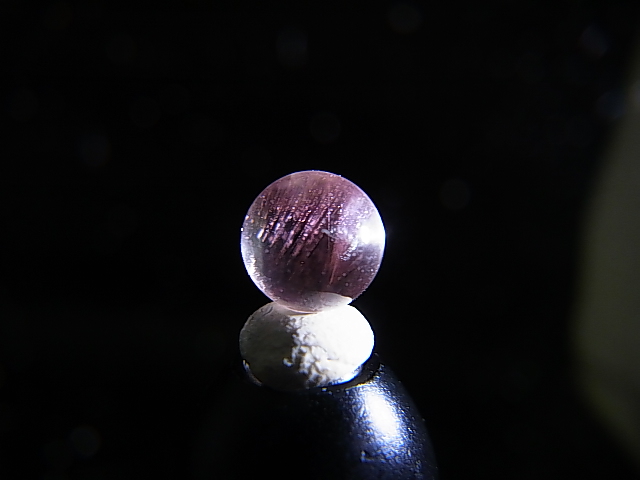 水晶(丸玉加工)の内部に非常に希なティンダルエフェクト(チンダル効果)現象の
