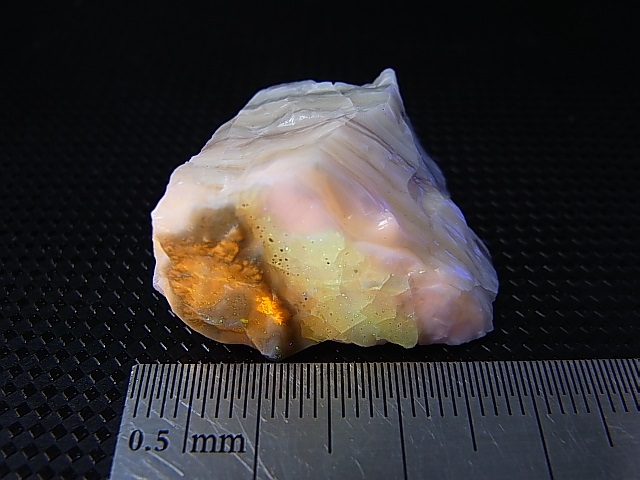 コモンオパールに属し、蛍光の原因は金・銀・鉄やアンチモンなどのレアメタル(希土類鉱物)と言われています。
