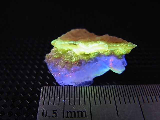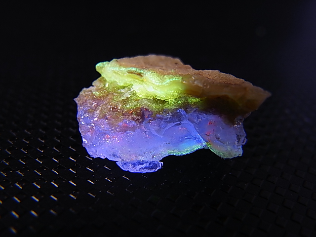 コモンオパールに属し、蛍光の原因は金・銀・鉄やアンチモンなどのレアメタル(希土類鉱物)と言われています。