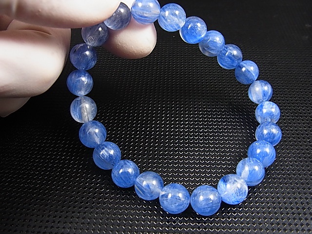 *カイヤナイトは非常に脆い性質のため樹脂含浸処理をしてビーズに加工していますが着色その他の処理はしていません。