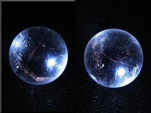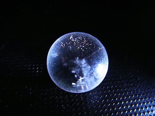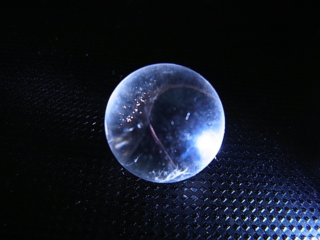 水晶(丸玉加工)の内部に非常に希なティンダルエフェクト(チンダル効果)現象の