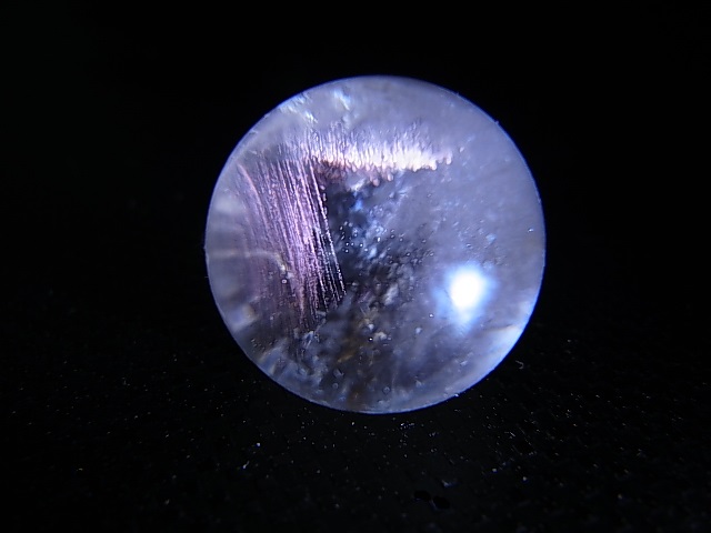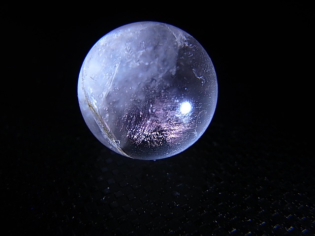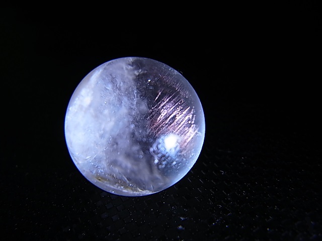 水晶(丸玉加工)の内部に非常に希なティンダルエフェクト(チンダル効果)現象の