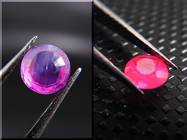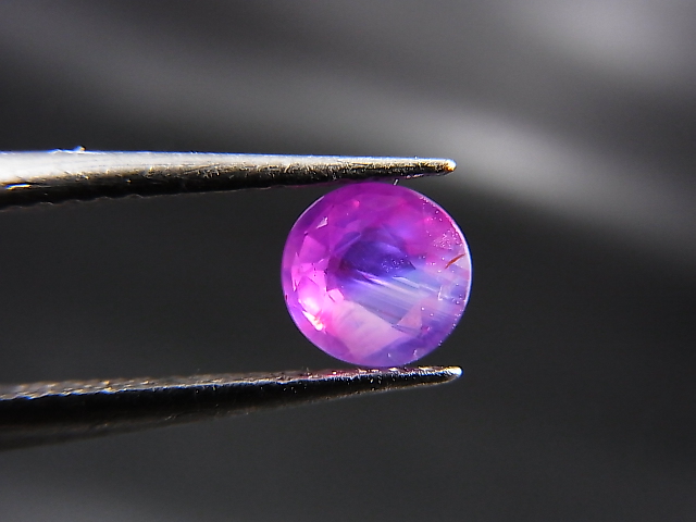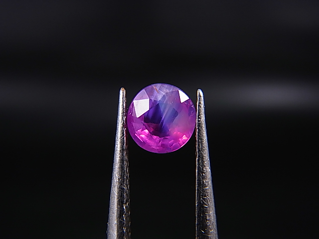 本品はホットピンクとシルクのようなホワイトカラーのバイカラーシルキーサファイアのルースです。