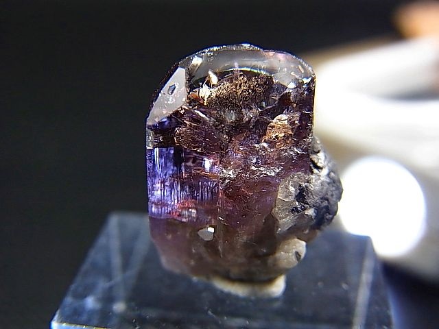 1つの原石の中にブラウン、ブルー(菫色)、パープルの結晶が共生しているマルチカラーです。