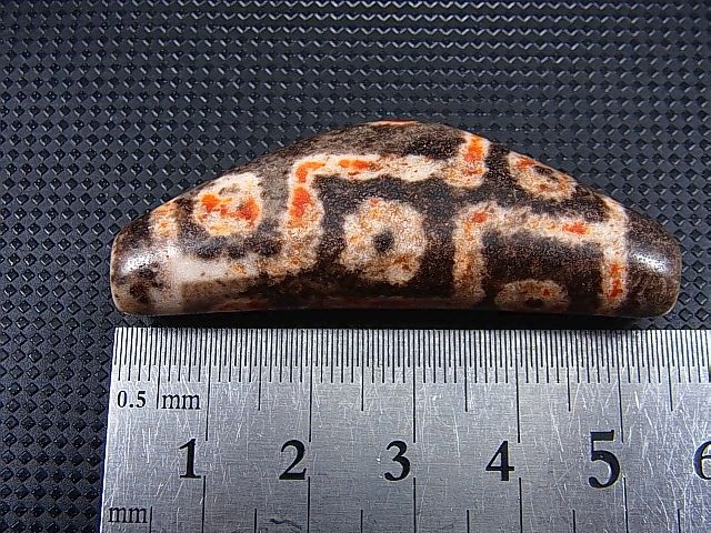 ヴィンテージ:「弓形赤九眼」西蔵(チベット)天珠 約54.5×21×11.5mm[PR4245]