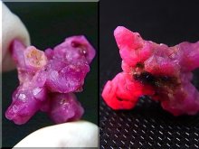 本品は犬牙型を含む結晶が複数連晶して出来たルビーの珍しいクラスターです。