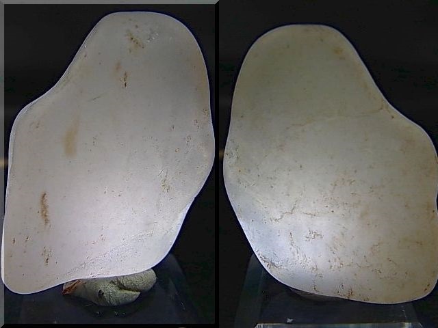 本品は羊脂白玉などと呼ばれ、角閃石のトレモライトを含みホータン玉の中でも特に稀少とされます。