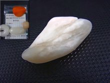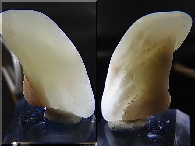 本品は羊脂白玉などと呼ばれ、角閃石のトレモライトを含みホータン玉の中でも特に稀少とされます。