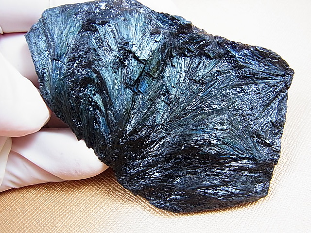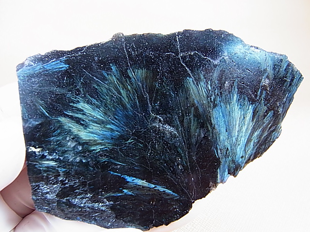 2種類の角閃石の層からなる干渉効果で表面に光(シラー)が見えます。