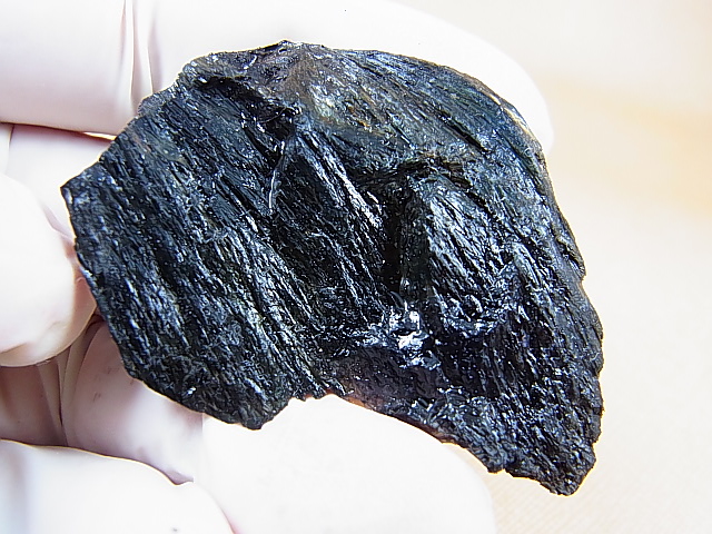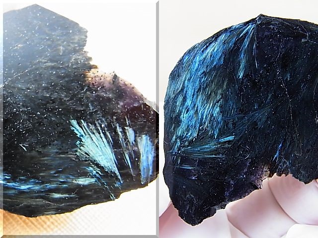 2種類の角閃石の層からなる干渉効果で表面に光(シラー)が見えます。