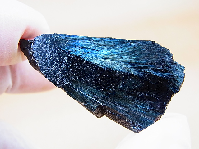 2種類の角閃石の層からなる干渉効果で表面に光(シラー)が見えます。