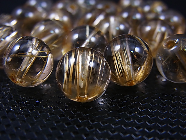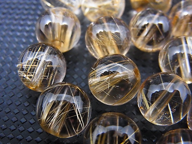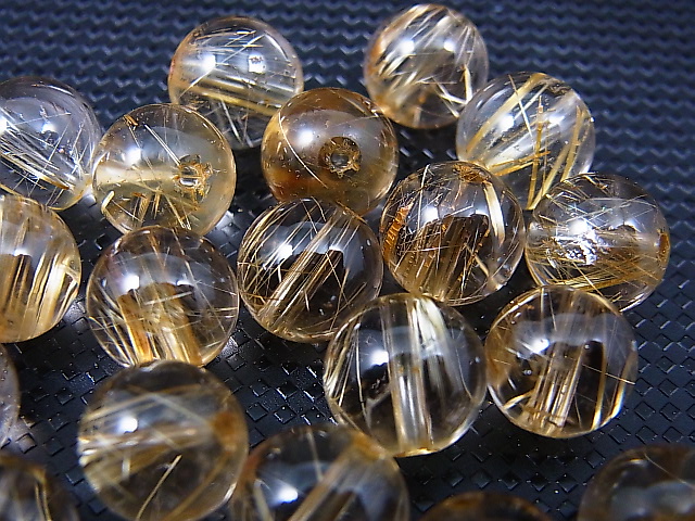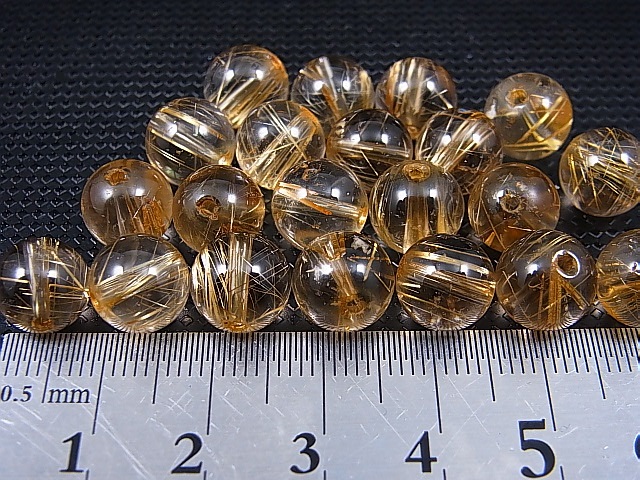 ブラジル産タイチンルチルインクリア水晶粒売りビーズ 9mm平均