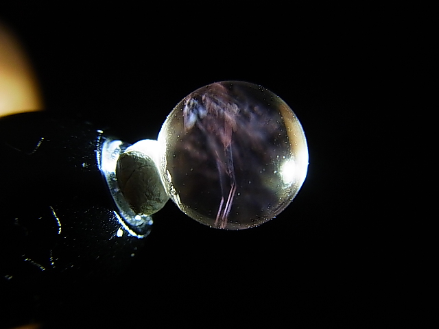 水晶(丸玉加工)の内部に非常に希なティンダルエフェクト(チンダル効果)現象の