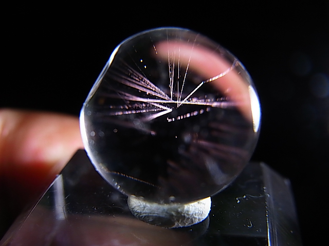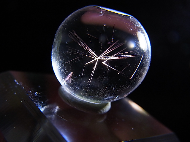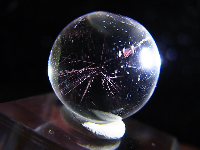 水晶(丸玉加工)の内部に非常に希なティンダルエフェクト(チンダル効果)現象の