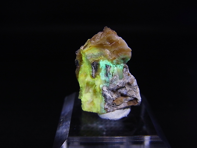 コモンオパールに属し、蛍光の原因は金・銀・鉄やアンチモンなどのレアメタル(希土類鉱物)と言われています。