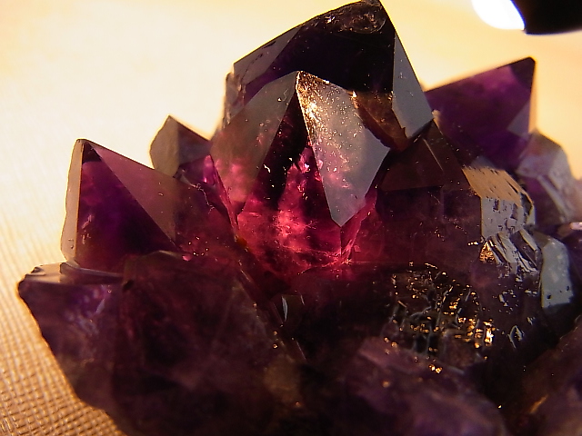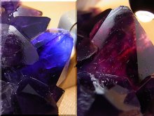 濃い紫色と白熱灯によるカラーシフト(紫→赤)が特徴的なサンプルです。