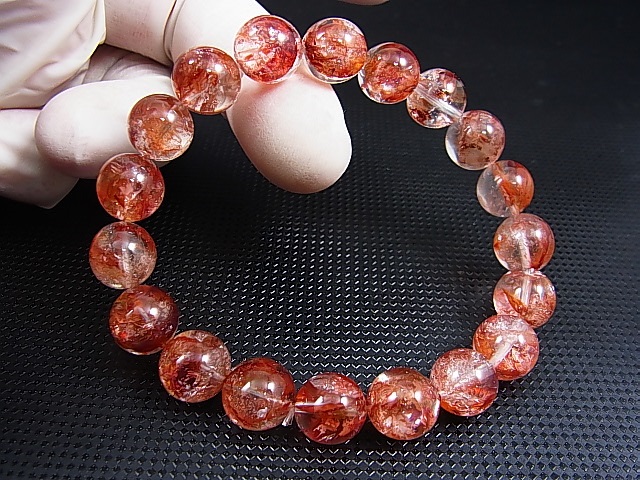 ブラジル・ミナスジェライス州産リモナイトイン「オーロラ」水晶ブレスレット 10.5mm平均 内寸:約16.5cm