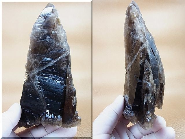 また、柱面の途中から少し折れてねじれた状態の曲がり水晶(ベントクオーツ)です。